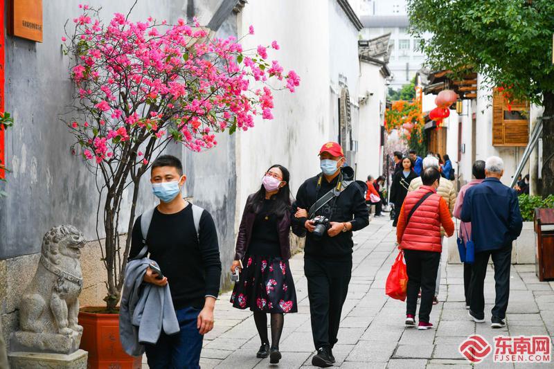 连日来,在位于南靖土楼景区的紫云山生态庄园内,漫山遍野的樱花树竞相绽放,美不胜收,吸引众多游客慕名而来踏青赏樱。福建日报记者记者 林辉 通讯员 张梦帆 谢威 摄 东南网2月18日讯(福建日报记者 郭斌)过文化年, 赏民俗宴, 到周边游……牛年春节,广大人民群众积极响应国家就地过年倡议,城市及周边市场客流明显上升,就地休闲成为新风尚。我省民俗文化游、都市休闲游持续活跃,温泉养生游、乡村体验游等热度上升,全省文旅市场安全有序,节日氛围欢乐祥和。据监测数据测算,2021年春节期间全省累计接待游客1612.46万人次,累计实现旅游总收入66.59亿元。广大留闽过年群众感受到福建浓浓的年的“味道”。 周边旅游明显升温 “这是我头一次泡海水温泉,太舒服了!”16日,正月初五,福州长乐机场旁边的某温泉景区热闹非凡,老家湖北黄冈的王刚从温泉池里上来,笑容满面。 王刚3年前来福州,从事建筑科技工作。今年响应倡议,留在福州就地过年。“早听说福州是‘温泉之都’,但一直没有时间去好好体验一番。今天正好与朋友相约‘试水’,果然名不虚传。”王刚说。 受新冠疫情影响,“就地过年”成了这个春节的特点。为更好满足广大人民群众春节期间在闽过年旅游休闲需求,春节假期省文化和旅游厅联动全省景区推出百项“乐游福建·就地过年”活动和优惠,让留闽过年群众充分感受福建年的“味道”。 春节期间,市内休闲游成为假日出行主流,城市公园、休闲街区等开放式景区(点)成为热点,春节期间全省各地接待本地游客的比重接近六成。福州森林公园樱花、桃花盛放,迎来如织游人,累计接待游客8.62万人次。厦门山海健康步道春节期间累计客流量超过30万人次,携亲带友登上山海健康步道,漫步岛内八山三水,看五缘湾点点白帆,青天碧浪,赏狐尾山郁郁葱葱、绿意掩映,尽享悠闲惬意的假日时光。央视春晚《一声爸妈 就是过年》公益广告播出,三明尤溪桂峰村18秒亮相全国,吸引游客纷纷前往打卡。宁德市区周边的乡村农家乐推出了“打糍粑、磨豆腐、舞龙灯、摘草莓”等系列体验活动,景区公路沿线多家农家乐生意火爆,部分特色农家乐“一位难求”。