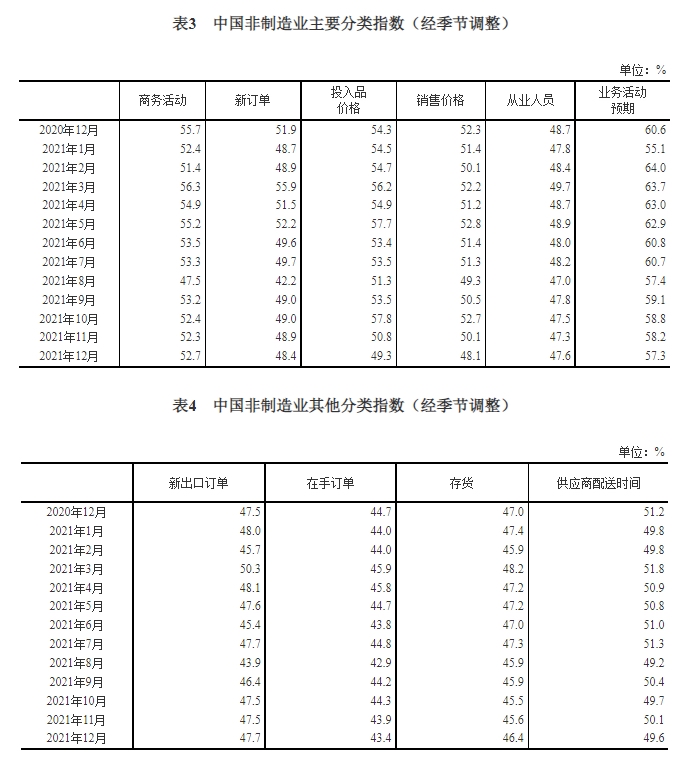 新订单指数为48.4%,比上月下降0.5个百分点,低于临界点,表明非制造业市场需求回落。分行业看,建筑业新订单指数为50.0 %,比上月下降4.2个百分点;服务业新订单指数为48.2%,比上月上升0.3个百分点。 投入品价格指数为49.3%,比上月下降1.5个百分点,低于临界点,表明非制造业企业用于经营活动的投入品价格总体水平回落。分行业看,建筑业投入品价格指数为48.1%,比上月上升3.2个百分点;服务业投入品价格指数为49.6%,比上月下降2.2个百分点。 销售价格指数为48.1%,比上月下降2.0个百分点,低于临界点,表明非制造业销售价格总体水平较上月下降。分行业看,建筑业销售价格指数为51.0%,比上月下降1.5个百分点;服务业销售价格指数为47.6%,比上月下降2.0个百分点。 从业人员指数为47.6%,比上月上升0.3个百分点,表明非制造业企业用工景气度有所改善。分行业看,建筑业从业人员指数为51.8%,比上月上升0.5个百分点;服务业从业人员指数为46.8%,比上月上升0.2个百分点。 业务活动预期指数为57.3%,比上月下降0.9个百分点,仍位于较高景气区间,表明非制造业多数企业对近期市场恢复保持信心。分行业看,建筑业业务活动预期指数为59.9%,比上月上升1.6个百分点;服务业业务活动预期指数为56.9%,比上月下降1.3个百分点。