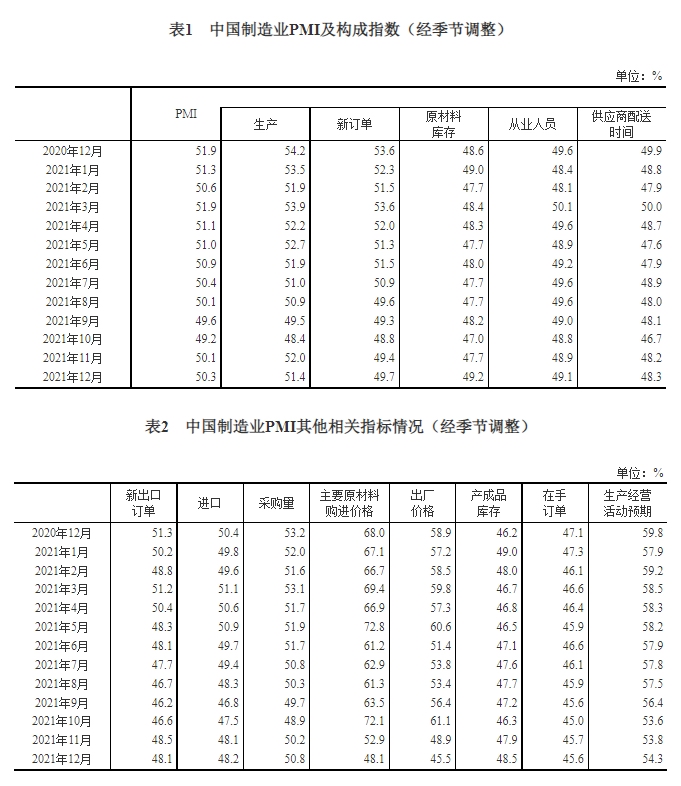 从企业规模看,大、中型企业PMI均为51.3%,分别比上月上升1.1和0.1个百分点,高于临界点;小型企业PMI为46.5%,比上月下降2.0个百分点,低于临界点。 从分类指数看,在构成制造业PMI的5个分类指数中,生产指数高于临界点,新订单指数、原材料库存指数、从业人员指数和供应商配送时间指数均低于临界点。 生产指数为51.4%,虽比上月下降0.6个百分点,但高于临界点,表明制造业生产保持扩张。 新订单指数为49.7%,比上月上升0.3个百分点,表明制造业市场需求继续改善。 原材料库存指数为49.2%,比上月上升1.5个百分点,表明制造业主要原材料库存量降幅明显收窄。 从业人员指数为49.1%,比上月上升0.2个百分点,表明制造业企业用工景气度有所回升。 供应商配送时间指数为48.3%,虽比上月上升0.1个百分点,但低于临界点,表明制造业原材料供应商交货时间较上月放慢。
