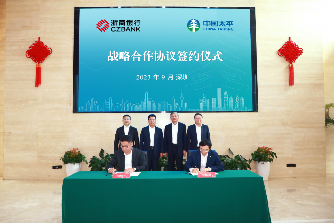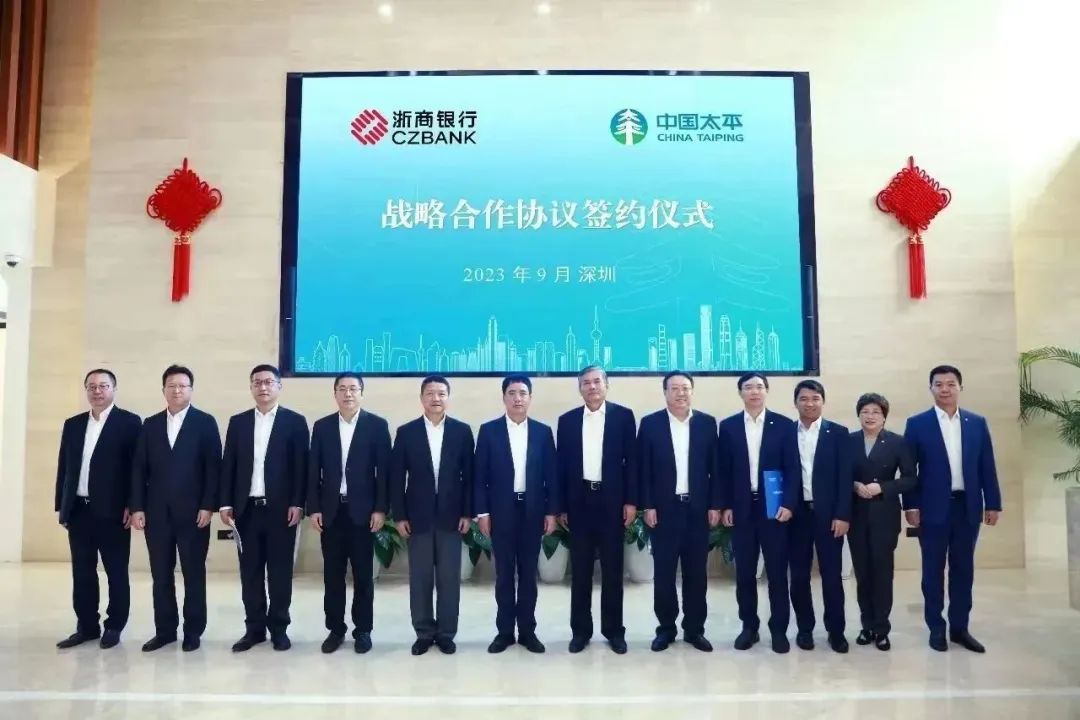9月22日上午,中国太平保险集团与浙商银行签署战略合作协议。中国太平董事长王思东、总经理尹兆君、副总经理朱捷、业务总监李庆明,浙商银行董事长陆建强、行长张荣森、副行长兼首席财务官景峰、副行长骆峰、行长助理周伟新、华南区域总监刘英明出席签约仪式。朱捷和骆峰代表双方签约。