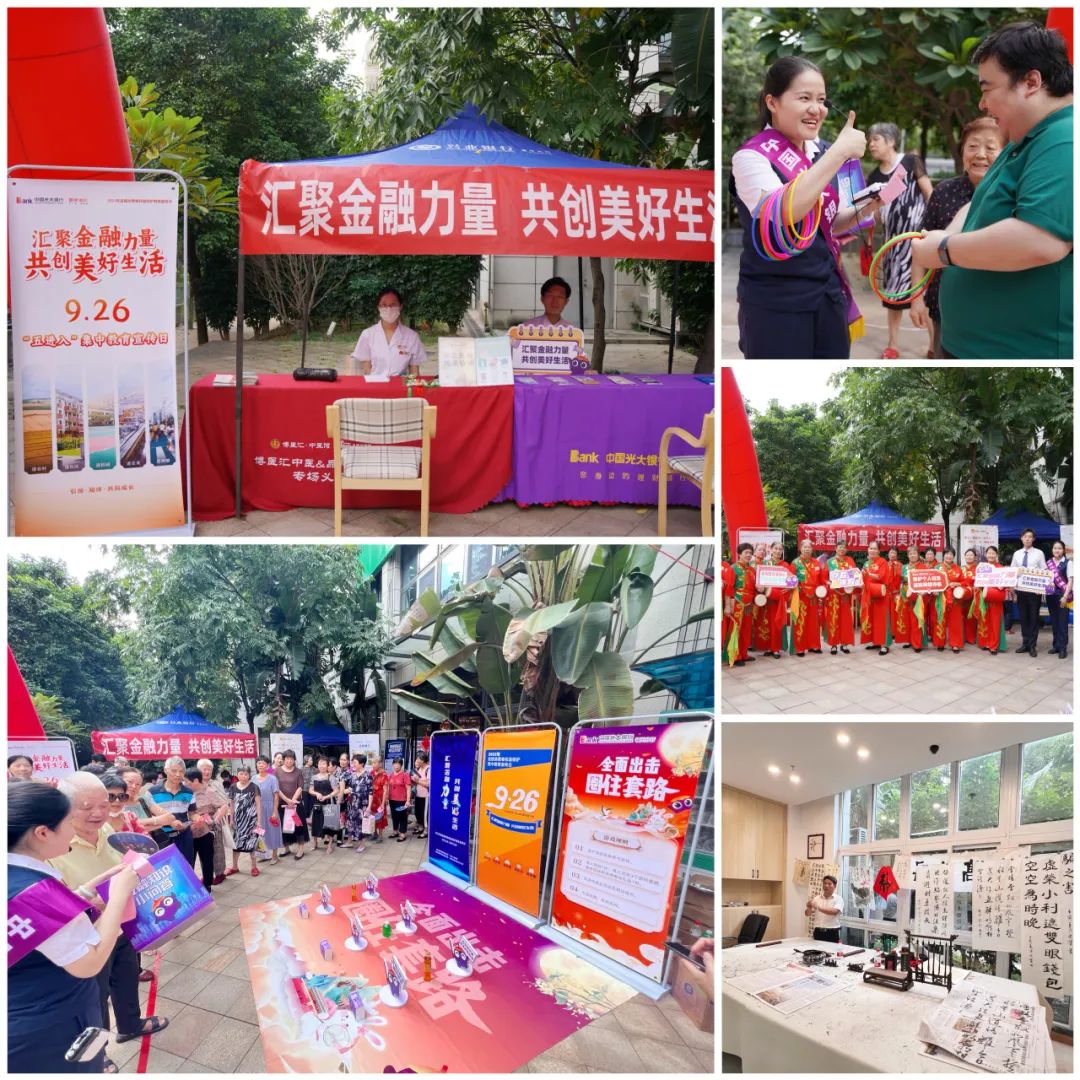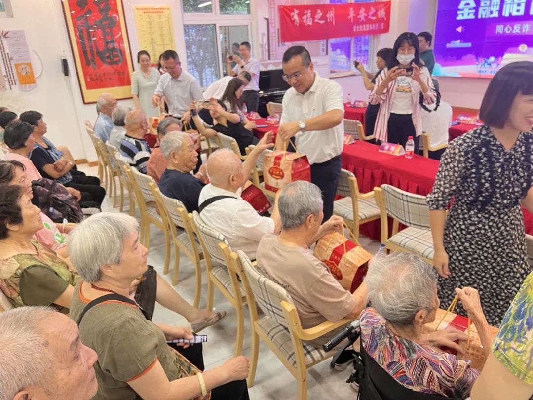 本次活动于华大街道“长者食堂”开设主会场、屏东社区屏东城水榭台设分会场,为社区老年群体带来了一场“金融知识中秋专属套餐”。活动现场不仅设置了金融知识、反诈常识宣传区,针对老年群体还重点宣传了养老诈骗、短信诈骗等常见案例及新型诈骗手段,提升老年群体的风险防范意识,为他们送上长者反诈“小锦囊”;同时,现场还安排了中医义诊、反诈主题小游戏以及书画交流、月饼 DIY、灯谜等丰富的活动,寓教于乐,共迎中秋。