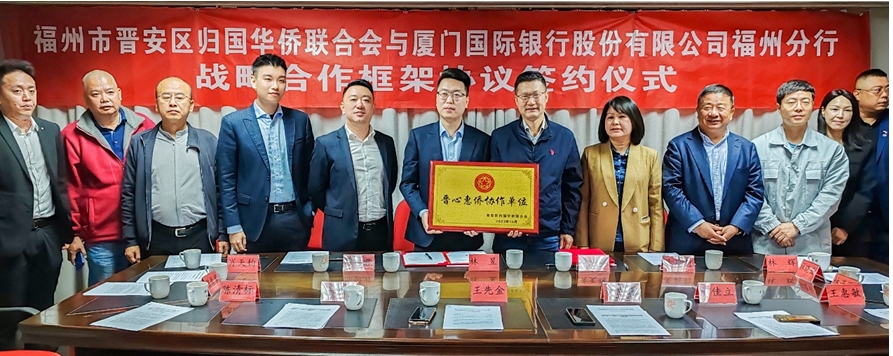 活动现场,晋安区归国华侨联合会向福州秀山支行颁发“晋心惠侨协作单位”。