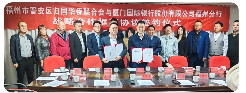 11月15日上午,由晋安区归国华侨联合会牵头举办的侨银座谈会在晋安区隆重举行,晋安区归国华侨联合会主席黄文辉,晋安区委统战部副部长吴莉莉,厦门国际银行福州分行党委委员、行长助理林昱,公司金融部副总经理陈恒君,福州秀山支行行长肖天钧出席此次活动。 活动现场,厦门国际银行福州分行行长助理林昱介绍了厦门国际银行发展史以及华侨金融业务发展愿景,晋安区归国华侨联合会主席黄文辉介绍了近期福州市晋安区归国华侨联合会工作情况及金融互助互惠情况。随后,福州分行行长助理林昱代表分行与福州市晋安区归国华侨联合会签署战略合作协议。