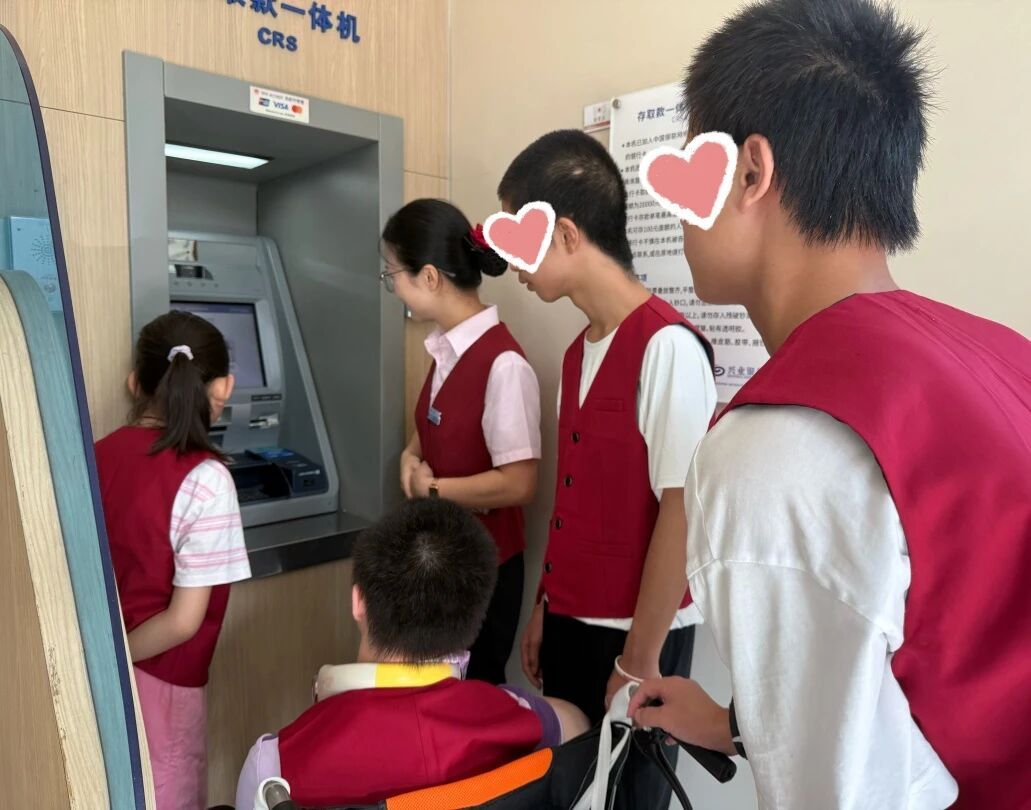活动伊始,兴业银行福州西门支行财富主管李丹瑜引导孩子们参观了银行网点,详细介绍了银行的基础功能、服务流程及自助设备操作规范。通过近距离观察和互动体验,让孩子们对金融机构的日常运作有了更直观的认识。