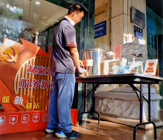 各营业网点以游戏化形式普及金融知识,推出钓鱼避坑、盲盒抽奖、翻牌配对、转盘答题等特色互动,让群众在“玩中学”识别非法中介、网贷陷阱等风险。同时,网点“爱心驿站”为户外劳动者提供休憩、充电、应季饮品等服务,用细节传递暖意。