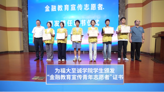 聚焦“虚假诱导网贷”陷阱,中国太保产险福建分公司副总经理佘剑钊开场致辞。福建警察学院孔老师开展 《防范虚假宣传诱导网络贷款》 主题分享。结合大学生真实受骗案例,剖析常见网络金融陷阱,增强学生辨别力和自我保护能力。 组建校园金融教育宣传队伍,活动现场由中国太保产险福建分公司副总经理佘剑钊及校方领导一起为6名学生颁发“青年金融教育宣传志愿者”聘书,组建首支校园金融教宣志愿队,形成可持续宣传支点。
