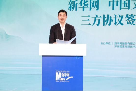 图为新华网总裁申江婴致辞 新华网总裁申江婴在致辞中表示,新华网作为新华社主办的中央重点新闻网站和互联网全球传播与服务平台,始终以服务国家战略为己任,持续聚焦文博产业发展,近年来充分发挥平台优势和技术优势,打造了“博物中国”等一批重点文化品牌项目,通过积极探索“让文物活起来”的传播方式,让千年历史文明不断走近公众。此次携手中国文物交流中心和苏州高新区共同推动“文物博物馆版权博览会”“数字文博资源版权服务平台”等品牌活动项目落地苏州高新区,共同构建“文博+文创+文旅”产业新生态,也是新华网央媒发挥平台和技术优势服务文化强国战略的具体实践。
