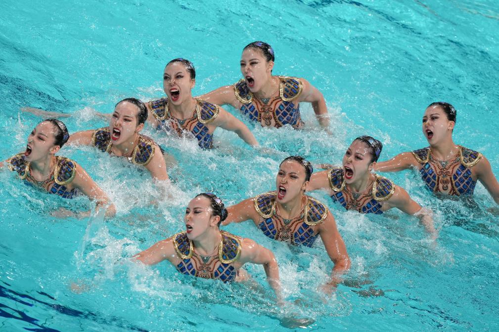 6月15日,中国队在2025年花样游泳世界杯总决赛集体技巧自选决赛中。新华社记者 邹竞一 摄 中国花样游泳队主教练张晓欢介绍,两年前队伍在西安短期集训时,她就萌发了创作《秦俑魂》的想法。但是,想要在花样游泳节目中还原颇具历史威严的秦兵马俑,这并不容易。 不过,她认为在洛杉矶奥运会备战周期,作为巴黎奥运会花样游泳项目全部金牌的包揽者,中国队必须用令人耳目一新的全新作品去开启卫冕之路。“新节目应该体现出中国人的文化自信!”张晓欢说。 于是,她就从张艺谋导演的《无界·长安》以及秦文化主题演艺《赳赳大秦》中,借鉴了许多创作灵感和中国的舞蹈元素。属于西安的厚重历史,顺利为竞技体育“赋能”。