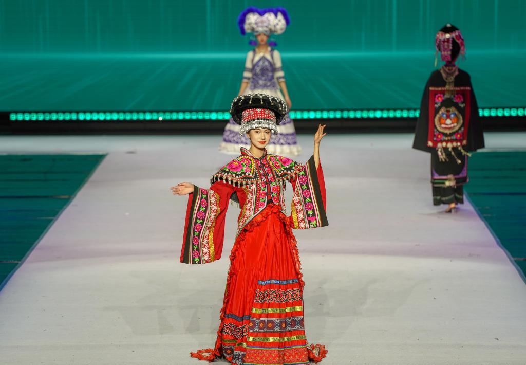 模特身着民族时装在T台上走秀。新华社记者 彭奕凯 摄 产业的兴盛,也为文化传承注入强劲动力。李济雁说,如今,村里的绣坊不仅让妇女们实现“家门口”就业,还通过订单式培训不断提升她们的技艺水平。政府组织的系统化培训,更让这项古老技艺焕发新的生机。 据统计,2024年楚雄州彝绣产业产值突破11.3亿元,带动6万余名绣娘就业增收,其中还包括2000余名通过针尖技艺获得稳定收入的残疾绣娘。2025年上半年,该产业产值已突破7亿元,同比增长10.9%。