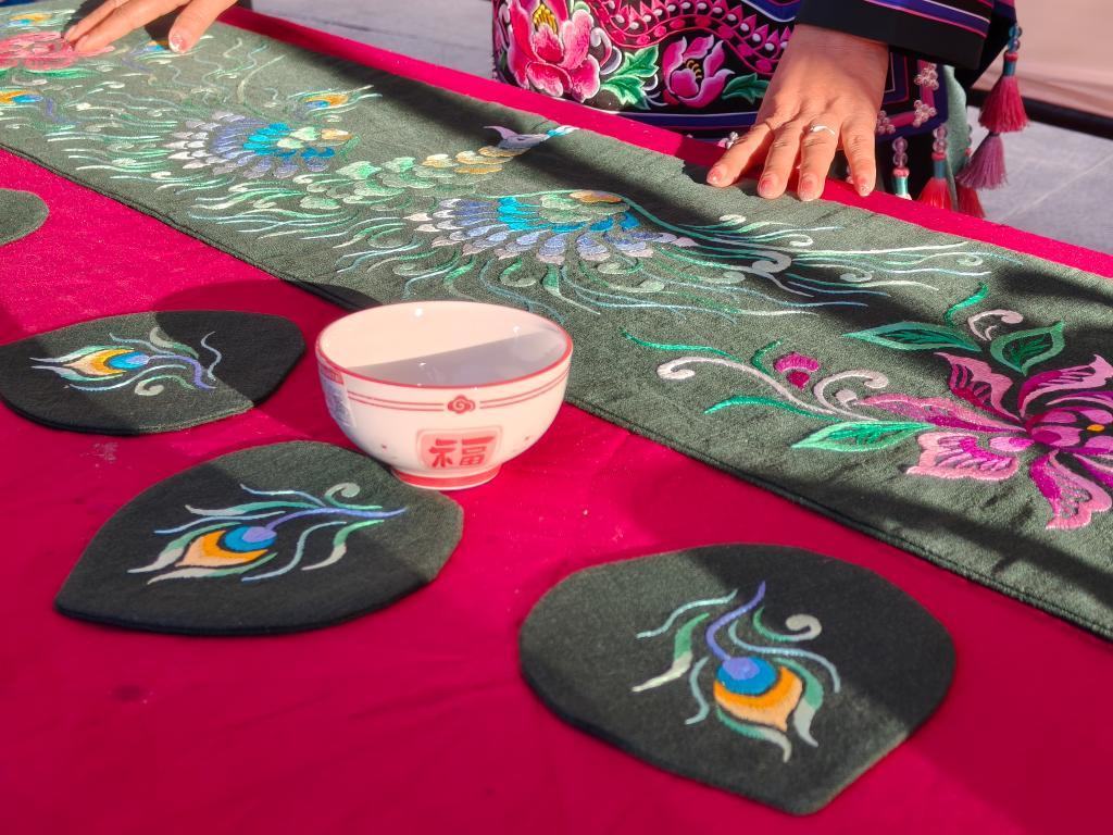 李济雁在展台前展示茶具垫。新华社记者 彭奕凯 摄 坐落于滇中的楚雄州,彝绣技艺传承已有1700多年。近年来,当地深挖文化资源中的产业潜力,建成彝绣产品交易中心,实现“绣品变商品、绣片变名片、秀场变市场”。截至目前,全州已建成77个彝绣车间、513个村级绣坊,形成“区域有园区、县县有企业、乡乡有车间、村村有绣坊”的产业网络。