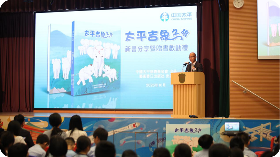 活动中,中国太平慈善基金会启动捐书计划,向300多所香港小学捐赠10,000册《太平吉象之旅》绘本,旨在通过生动故事推动生物多样性教育,启发青年一代关注自然生态。