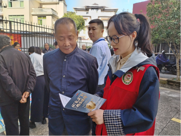 为深入贯彻落实党的二十大精神及中央金融工作会议精神,根据长汀金融监管支局部署要求,落实“一行(社)一保险一社区”网格责任,10月24日上午,人保财险长汀支公司联合厦门国际银行长汀支行走进汀州镇新民社区,开展防范非法金融活动宣传,把防非打非知识送到老年人手中。