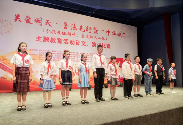 10月25日上午,由福建省关工委、福建省司法厅、福建省教育系统关工委、福州市关工委、福州市司法局、鼓楼区关工委、鼓楼区司法局、鼓楼区教育系统关工委、鼓楼区鼓西街道党工委、办事处、人保财险福州市分公司主办,鼓楼区鼓西街道关工委、西湖社区等承办的“关爱明天·普法先行”暨“中华魂”(弘扬长征精神 赓续红色血脉)主题教育活动征文、演讲比赛决赛在福州西湖电影院举办。