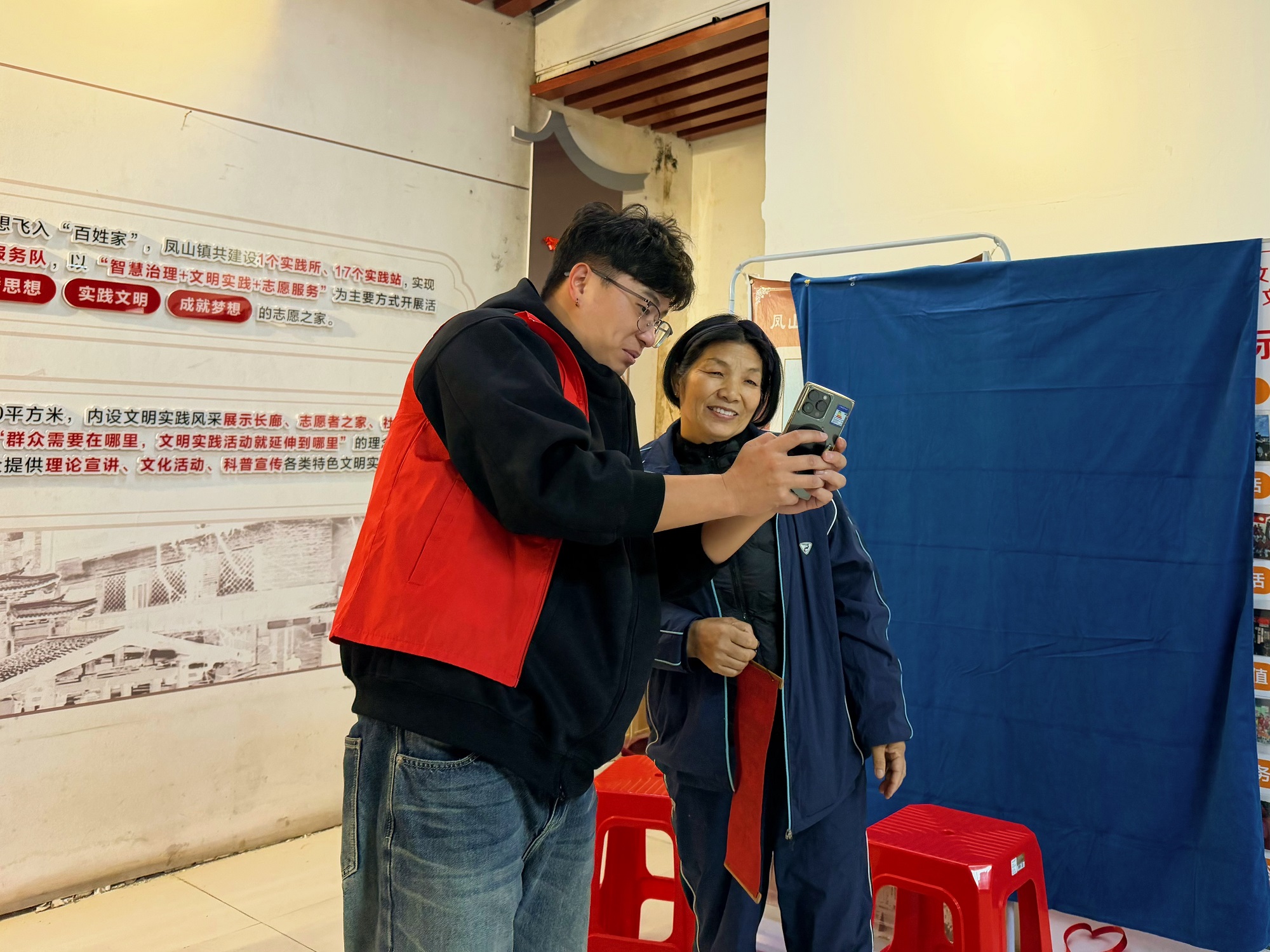 镜头成了捕捉欢乐的魔法盒子。一对相识超过半个世纪的老闺蜜,在平安产险志愿者的鼓励下,拍下了人生第一张正式合影。“靠近一点,对,笑开一点!”快门声中,她们紧紧依靠,眼中闪烁着少女时代的光彩;另一边,一位平日里神情严肃的陈爷爷穿着板正的衬衫西裤,他在镜头前挺直腰板,志愿者为他递上一把火红的扇子,他略显紧张地整理了一下衣领,郑重地说:“这辈子没这么正式拍过照,得有点样子。”当照片预览呈现在他眼前时,他那经年不苟言笑的脸上,绽放出温暖的微笑;爱笑的刘奶奶主动要求“我要这个糖葫芦道具,小时候最爱吃的。”她举着糖葫芦展颜大笑,大方展示自我。