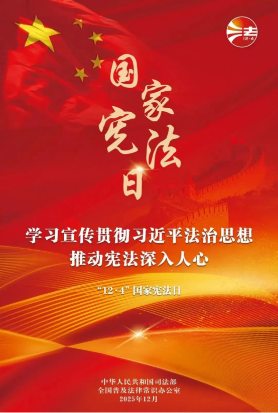 2025年12月4日是第十二个国家宪法日 12月1日至7日第八个“宪法宣传周” 2025年“宪法宣传周”主题: 学习宣传贯彻习近平法治思想 推动宪法深入人心