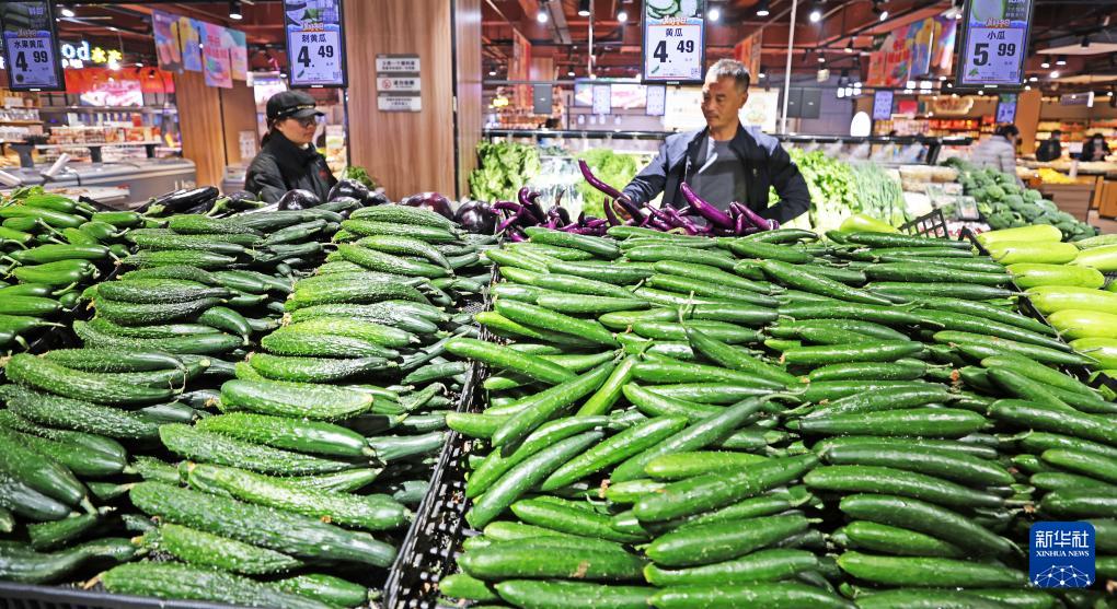 12月10日,消费者在山东省临沂市平邑县一家超市选购蔬菜。 国家统计局12月10日发布数据显示,11月份,居民消费持续恢复,全国居民消费价格指数(CPI)环比略降0.1%,同比上涨0.7%,涨幅比上月扩大0.5个百分点,为2024年3月份以来最高。扣除食品和能源价格的核心CPI同比上涨1.2%,涨幅连续3个月保持在1%以上。 新华社发(武纪全摄)