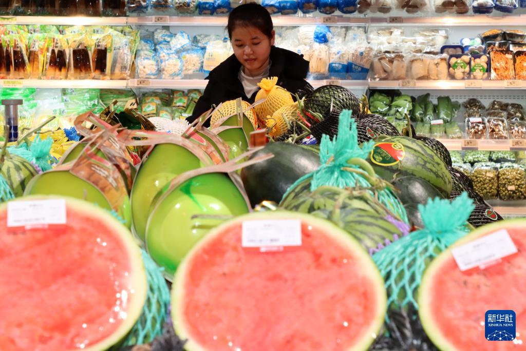 12月10日,消费者在山东省滨州市博兴县一家超市选购水果。 国家统计局12月10日发布数据显示,11月份,居民消费持续恢复,全国居民消费价格指数(CPI)环比略降0.1%,同比上涨0.7%,涨幅比上月扩大0.5个百分点,为2024年3月份以来最高。扣除食品和能源价格的核心CPI同比上涨1.2%,涨幅连续3个月保持在1%以上。 新华社发(陈彬摄)