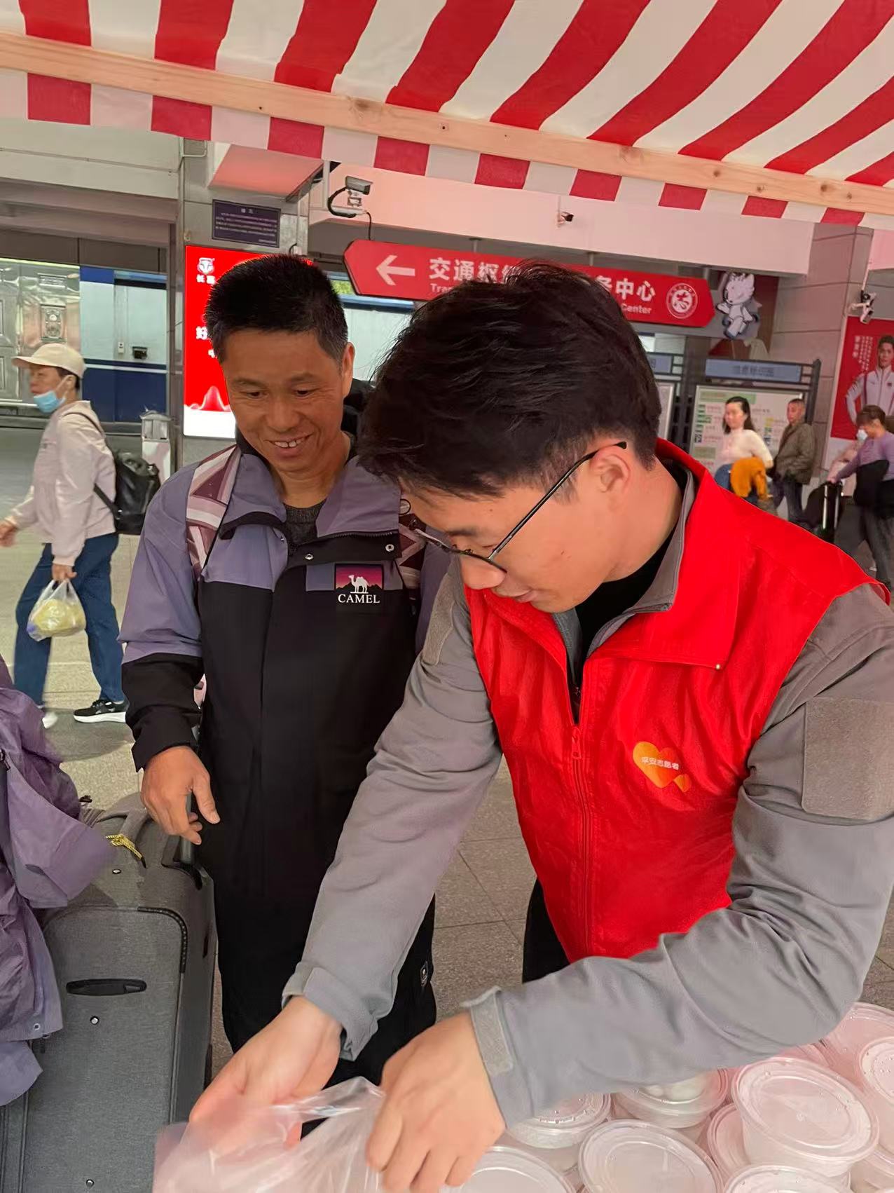 除了往来旅客,平安志愿者们还专程为坚守岗位的执勤民警、车站工作人员送上汤圆与敬意。“感谢你们的守护,让我们出行更安心。”平安志愿者的代表小黄的话语,道出了对一线工作者的感谢,也让这份冬日温暖多了一重责任与担当。