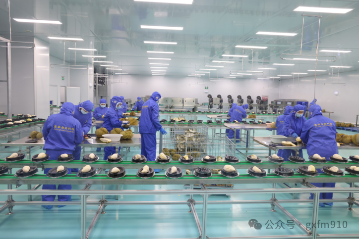 此后,此柜冷冻榴莲进入广西嘉荣食品科技有限公司生产车间后,将生产成带壳切片榴莲、冷冻榴莲肉、榴莲冻干及榴莲泥等多类深加工产品。