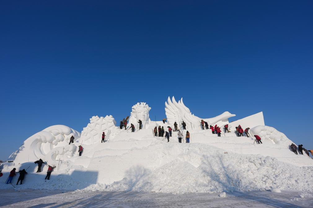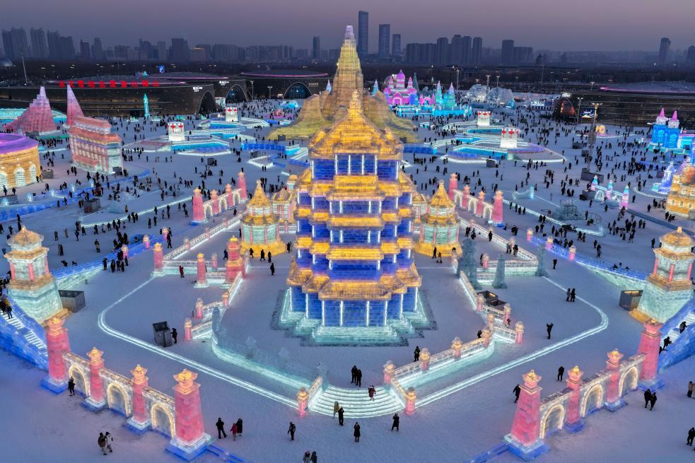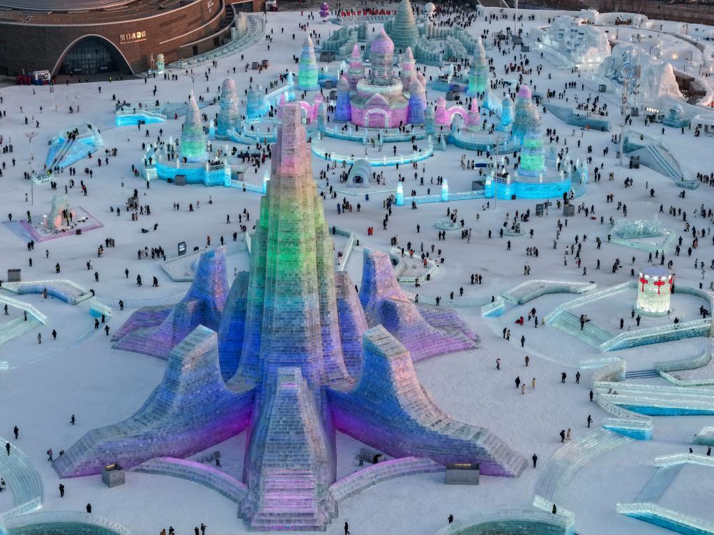 1月6日 2026哈尔滨国际冰雪经济博览会启幕 哈尔滨冰雪资源丰富 冰雪文化底蕴深厚 冰雪经济正成为高质量发展的重要动力 这个冬天 零下二十五摄氏度的黎明 松花江面浮起一层水晶色的光 采冰人凿开冰面的第一声脆响 像古琴的散音 把整座城市从黑甜乡里唤醒 冬天仿佛是大自然的休止符 但哈尔滨人 却用冰与雪奏响了 最华美的乐章 风吹那大雪天呐 采呀嘛采头冰 采冰的那个汉子哟 红呀嘛红脸膛啊 …… 松花江上 十几名采冰汉子 在冰把头的带领下喊着号子 迎着寒风 在江心挥舞手中的凿子 一块块冰砖 被运上江面 运往城市的梦境深处 一座童话城市正在悄悄拔节 冰雕玉砌的王国流光溢彩 欢声如沸 像一场不愿醒来的、晶莹的梦 人们从此看到的冰 将不再相同 那里面有整座城市的过往 在无声地亮着 在这里 冰不再是寒冷的象征 而是被赋予灵魂的艺术载体 采自松花江的天然冰块 如钻石般晶莹剔透 经能工巧匠之手 幻化成城堡、宫殿、神话人物与未来图景 夜幕降临 五彩灯光穿透冰体 整座城市仿佛披上梦幻霓裳 连呼吸都凝结成诗 冰雕作品在灯光的映照下流光溢彩 仿佛是用月光与星辉雕琢而成