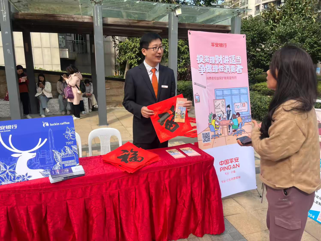 作为活动的核心便民服务环节,平安银行福州金融街支行聚焦居民最关心的金融安全问题,打造了沉浸式反诈宣传专区,讲解“不轻信、不透露、不转账、多核实”的防骗原则。针对老年群体等易受骗人群,工作人员重点提示个人信息保护要点,以“一对一”答疑、案例警示、资料派发等多种形式,将金融安全知识送到居民身边,切实守护好群众的“钱袋子”。这种“精准化科普+场景化互动”的宣传模式,既延续了支行深耕社区的金融宣教传统 ,也彰显了平安银行“金融为民”的核心理念。