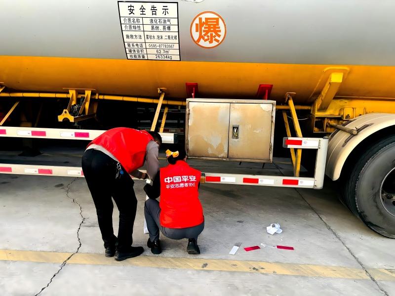 1月13日,平安产险泉州中心支公司志愿者们走进泉州市泉港某石化公司,为企业的油罐车、液化气配送三轮车集中张贴反光贴,以实际行动为车辆出行筑牢安全防线。此次新春志愿服务,既是为客户送上“平安福”的暖心之举,更是深化“保险+服务”客户服务理念的生动实践。 本次活动主动拓展服务边界,聚焦危险品运输行业高频出行、夜间作业的特点,将节日关怀转化为安全守护行动。志愿者团队结合专业风险防控经验,针对企业运输场景中的安全隐患,提供反光标识粘贴等定制化服务,精准破解客户运输安全痛点。