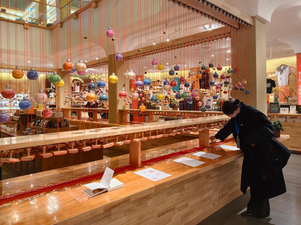 2026年1月28日,一位小朋友在敦煌书局体验研学课程。新华社记者 任延昕 摄 推开艺术空间“敦煌无界”的大门,暖意袭来,香气氤氲。艺术家工作室造型似洞窟,开放式展台上陈列着各类文创。风滚草、骆驼刺、红柳枝、胡杨叶等沙漠里常见的植物,成了风格独具的装饰。曾经流浪街头的小土狗“春天”在店里“巡逻”,小土猫“小吉”则懒懒地躺在椅子上,引来一波波游人围观。 “敦煌的传统景区大多在户外。去年,我们改造了这处闲置厂房,把它当作城市里的一个小景区来打造。如今,这里成为了游客了解敦煌的美学窗口、市民感受新生活方式的好去处。”“敦煌无界”负责人张海霞说。 在敦煌印局,数百个彩色沙瓶装置错落陈列,每个沙瓶的终端都连接一个敦煌文化主题的印章。每敲一下印章,缤纷的沙漏就上下起伏、叮当作响。
