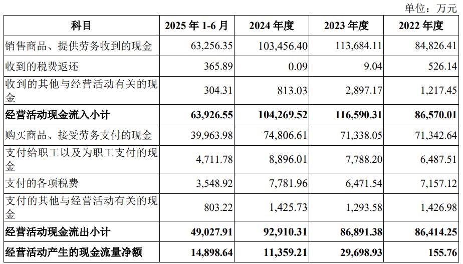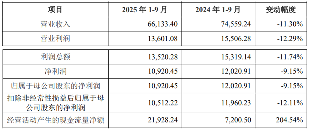 2025年1-9月,公司营业收入为66,133.40万元,净利润/归属于母公司股东的净利润10,920.45万元,扣除非经常性损益后归属于母公司股东的净利润为10,512.22万元,经营活动产生的现金流量净额为21,928.24万元。