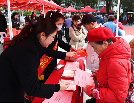 志愿服务暖人心 新春“志愿服务集市”前人头攒动,暖意融融。中邮保险、中国人寿、农业银行、泉州银行、光大银行、兴业证券等金融机构现场设置互动区,工作人员们结合春节骗局高发的特点,通过宣传折页详解了常见的电信诈骗、虚假理财套路,为居民送上实用的金融知识与新春礼物。健康义诊摊位前,医护人员耐心提供检测与咨询,守护居民健康过年;平安建设与反诈宣传区,工作人员通过发放资料普及安全知识;福州市集邮协会与福州西湖国山老干部理论宣讲志愿服务队带来了主题邮票展,林国山老师为居民生动讲解了邮票背后的历史文化、时代精神与党的光辉历程。本次集市通过多元化的贴心服务,切实传递了社区关怀,营造了喜庆祥和、温暖互助的节日氛围。