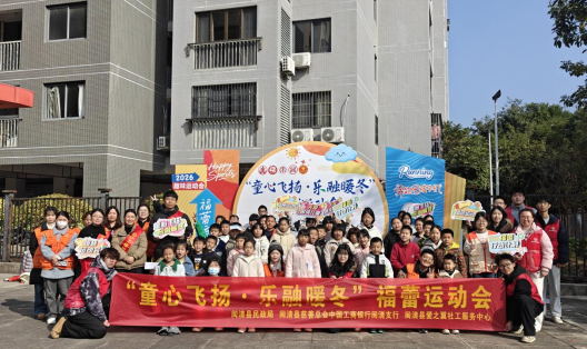 2026年2月3日,闽清县江滨公园内暖意洋溢、欢笑阵阵。在闽清县民政局指导下,工行福州闽清支行作为联动单位,组织青年志愿者团队全程参与“童心飞扬·乐融暖冬”福蕾行动专场运动会,以“爱心领队”的身份陪伴困境儿童共度了一段充满趣味与温暖的冬日时光。