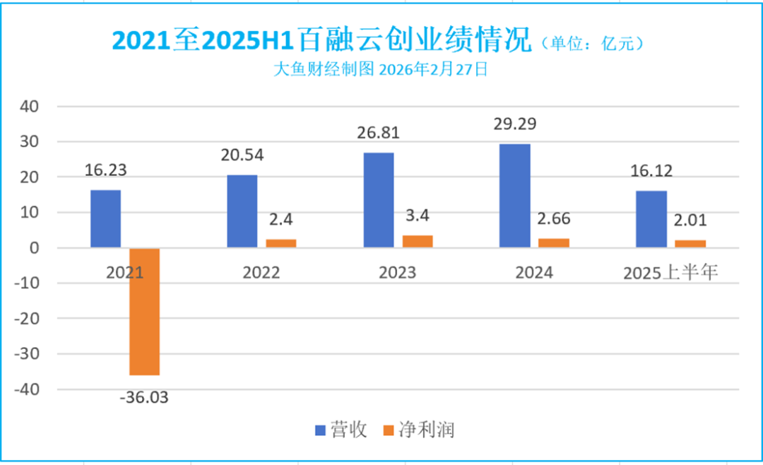 图片来源:百融云创公告截图 近年来,百融云创业绩波动较大,2021年实现了大额亏损,主要由于可赎回可转换优先股公允价值变动所致。在此后的三年里,百融云创营收稳步增长,但净利润在2024年出现下滑。 2025上半年,百融云创实现营收16.12亿元,同比增长22%;期内实现净利润2.01亿元,同比增长41%。