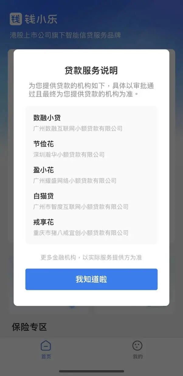 数据来源:百融云创年报 这块业务包含了知名的贷款品牌“榕树贷款”、“钱小乐”等个人消费贷业务。 钱小乐App显示,其贷款服务合作机构包括深圳瀚华小额贷款有限公司、广州耀盛网络小额贷款有限公司、广州市智度互联网小额贷款有限公司、重庆市猪八戒宜创小额贷款有限公司等。