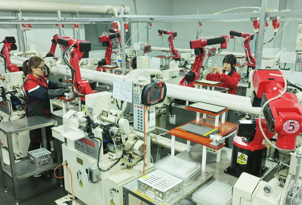 在深圳市坪山区石井街道,环卫机器人进行夜间协同作业(资料照片)。新华社发 发挥我国超大规模市场和丰富应用场景优势,加快场景培育和开放,推动创新成果转化,更多新技术、新产品、新业态加速从“实验室”走向生产生活。 设立全国高校区域技术转移转化中心、组建高能级创新平台、优化制造业中试平台体系化布局……一系列部署推动创新链和产业链无缝衔接,让创新更好赋能产业,产业更好激发创新,促进经济增长更具质量、更有后劲。 产业“家底”更加厚实。粮食产量连续两年稳定在1.4万亿斤以上,制造业增加值连续16年稳居世界首位,工业增加值对经济增长的贡献率升至35%,服务业增加值占国内生产总值(GDP)的比重增至57.7%。
