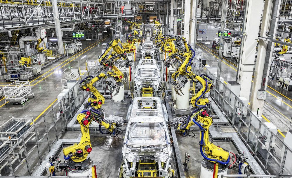 在位于重庆市两江新区的赛力斯汽车超级工厂拍摄的自动化生产作业现场(2025年9月19日摄)。新华社记者 王全超 摄 新动能积厚成势。规模以上高技术制造业增加值占规模以上工业增加值的比重超过17%,数字经济增加值有望达到49万亿元,新能源汽车国内新车销量占比超过50%,工业互联网融合应用全面覆盖41个工业大类行业。 2025年,中国跻身全球创新指数排名第十位,稳居36个中等偏上收入经济体之首。联合国副秘书长盖·莱德以“进入创新爆发期”形容中国科技创新。