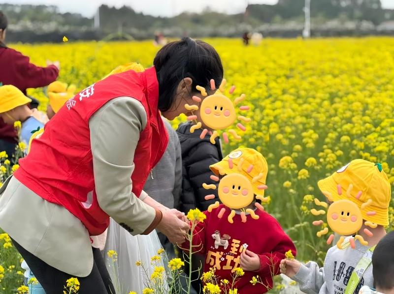 随后的“巧手拼花灯”环节中,志愿者陪伴孩子们裁剪组装灯笼,传递元宵民俗文化。活动尾声,“开学安全小课堂”同步开讲,志愿者结合电信诈骗案例,教孩子们牢记安全口诀,并向家长普及维权渠道。“这个活动策划很用心,既让孩子们感受到传统文化魅力,又让他们学会保护个人信息!”参与家长高度评价。 油菜花田种责任,公益研学润童心 在漳州漳浦县,平安产险漳州中心支公司联合红杉木幼儿园开展“认养油菜花”研学活动。孩子们在志愿者讲解下观察油菜花生长周期,并通过认养牌仪式建立责任意识。 “我的油菜花要快快长大!”稚嫩的声音中,10余名幼儿完成专属认养,于实践中理解“食物来之不易”的深意。