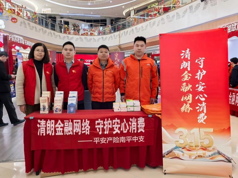 为深入贯彻落实党的二十大和二十届历次全会精神,共同营造“平安福建共建共享”社会氛围,近日,平安产险南平中心支公司积极聚焦“清朗金融网络守护安心消费”主题,深入开展“3·15”国际消费者权益日金融消费者权益保护教育宣传系列活动,将金融知识普及与暖心公益深度融合,并通过多场景铺开金融宣教网,让安全知识触达千家万户,用专业服务与实际行动为广大消费者筑牢权益防线,着力营造安心、放心、舒心的金融消费环境。 进商场:普及金融知识,共筑安心消费环境 3月10日,平安产险南平中心支公司积极参加由南平市人民政府办公室、南平金融监管分局、建阳金融监管支局指导的“2026年3·15金融消费者权益保护教育宣传活动”,志愿小分队在建发商场,通过设置宣传摊位、发放宣传资料、以面对面答疑解惑等形式,向过往群众普及金融知识、讲解风险防范要点,帮助社会公众增强风险意识和提升防范能力。