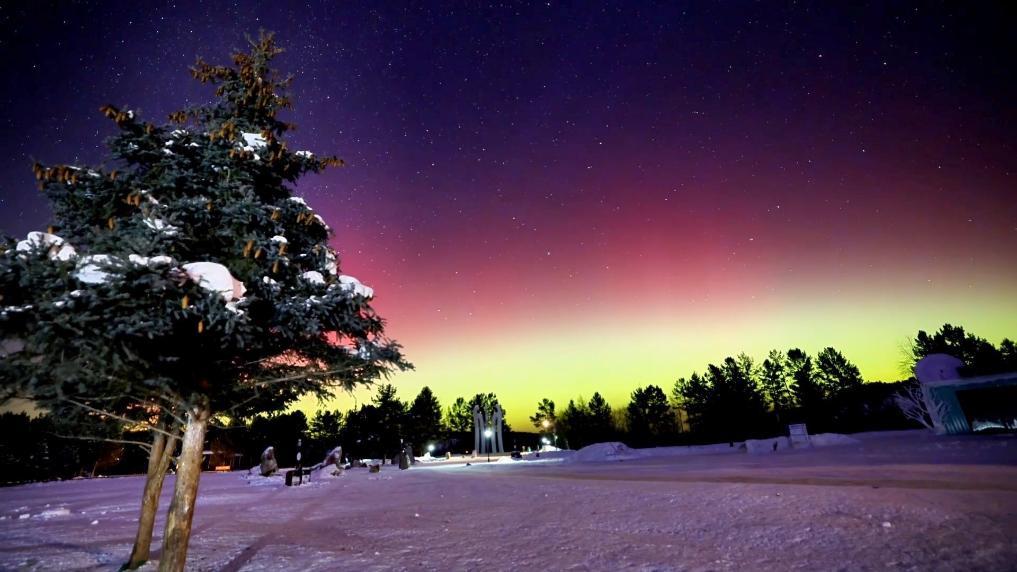 ■北国极光添浪漫 大批游客春日追光 近日,在素有“极光之城”之称的黑龙江省大兴安岭地区漠河市,出现了红绿极光美景,吸引大批游客踏雪追光。
