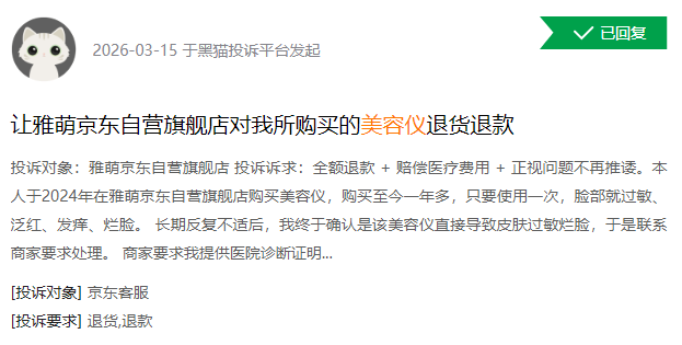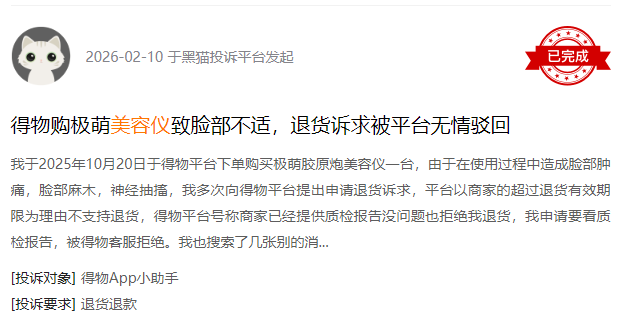 近期,黑猫投诉平台上部分对家用美容仪的投诉。 “以‘新规’为节点,企业需全面梳理产品线,射频类产品立即启动第三类医疗器械注册证申报,不抱侥幸、不拖延;非射频类产品严格对照《医疗器械分类目录》,明确产品分类边界,避免超范围经营。”曹伟强调。 另外,中国医学科学院整形外科医院激光美容中心副主任、主任医师冯永强提醒,射频家用美容仪纳入医疗器械监管后,产品安全性有望大幅提升,但功率仍远低于医用设备。“家用仪仅能实现短期即时效果,无法通过频繁使用达到医用级治疗效果,低能量累积不能替代医用大功率治疗。”他建议,消费者应树立合理预期,严格按照产品说明书使用,不自行增加使用频次;使用后注重补水保湿,避免当日使用成分复杂的护肤品,降低皮肤过敏风险。 |