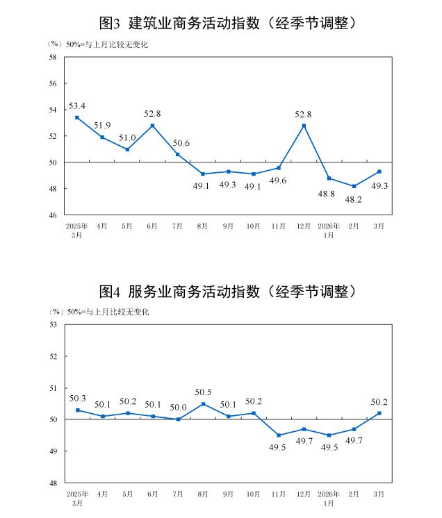 分行业看,建筑业商务活动指数为49.3%,比上月上升1.1个百分点;服务业商务活动指数为50.2%,比上月上升0.5个百分点。从服务业行业看,铁路运输、电信广播电视及卫星传输服务、货币金融服务、保险等行业商务活动指数均位于55.0%以上较高景气区间;零售、住宿、餐饮、房地产等行业商务活动指数均低于临界点。