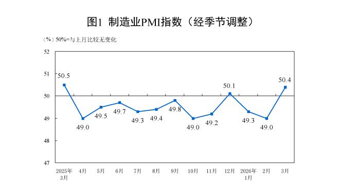 国家统计局服务业调查中心 中国物流与采购联合会 一、中国制造业采购经理指数运行情况 3月份,制造业采购经理指数(PMI)为50.4%,比上月上升1.4个百分点,高于临界点,制造业景气水平回升。