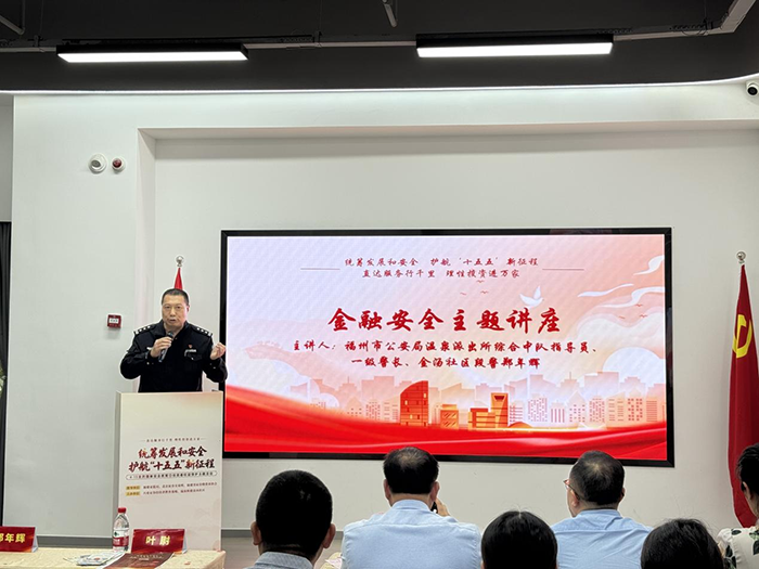活动特邀温泉派出所综合中队指导员、一级警长郑年辉带来金融安全主题讲座,有效提升居民识骗防骗能力。