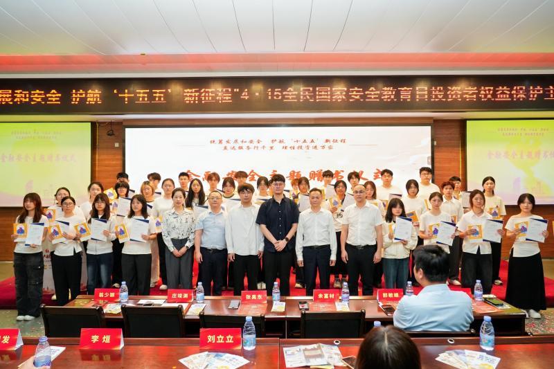 4月13日下午,在福建证监局、北京证券交易所、福建省证券期货业协会指导下,兴业证券福州国家级投资者教育基地与福建江夏学院金融学院联合开展“统筹发展和安全 护航‘十五五’新征程”4·15全民国家安全教育主题投教活动,金融学院师生代表近百人参与。 兴业证券始终致力于将投资者教育融入国民教育体系。自2017年起,基地与素有“福建省银行家摇篮”美誉的福建江夏学院金融学院共建大学城投资者教育基地,联合开展必修课程教材共创、线上精品课程开发,携手开设“智能金融与AI量化分析”微专业、共建实习实训平台,持续推动校企协同育人走深走实。 活动正式开始前,校企双方在金融学院会议室举行了国民教育工作沟通交流会。与会嘉宾围绕投资者教育纳入国民教育体系、金融素养课程共建、数字化投教工具在高校的应用等议题展开深入交流,并就下一阶段合作重点达成多项共识。 下午三时许,活动在金融学院学生带来的歌曲《心有所依》中拉开帷幕,歌曲以温暖的旋律传递了金融守护万家灯火的深意。金融学院党委书记郭敏峰代表学院致欢迎辞,向莅临指导的北京证券交易所、福建证监局、福建省证券期货业协会及兴业证券各位嘉宾表示热烈欢迎。兴业证券数智平台部总经理助理庄竣渊代表企业方致辞,回顾了双方多年合作历程,表达了兴业证券深耕国民教育的责任担当。 随后,金融安全主题高校随行展与校企金融安全合作成果书籍正式发布。随行展设置金融风险防范、理性投资理念等专题板块,将在校园内持续展出;成果书籍系统梳理了双方在教材共创等领域的合作成果。发布仪式后,第三届“智能金融与AI量化分析”微专业入学仪式顺利举行,与会嘉宾为新一届学员颁发入学证书并赠送投教读物。