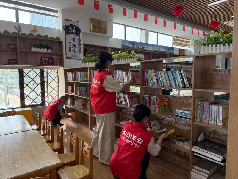 四月的八闽大地,春寒尽褪,和风煦暖。微风过处,书香满溢。 4月23日是世界读书日。连日来,平安产险福建分公司志愿者们躬身走入社区一隅、公园草坪,暖心相伴银发长者,将温情与书香,撒遍八闽山山水水。他们不为完成任务而行,更似追寻书香与故事的同行者,穿梭于八闽各地,与缕缕墨香欣然相逢。指尖拂去纤尘,公益书角的微光,便在书架间缓缓苏醒。 莆田南桥社区、南平顺昌东门社区里,志愿者们迎着晨光忙碌,执布轻拭。俯身整理书架,指尖轻触书脊,细细拭去缝隙微尘;将散落绘本一一归置,温柔抚平桌角磨损痕迹。阳光透过窗棂倾洒,为焕然一新的书角镀上一层柔光。志愿者们轻声笑言:“把这里收拾妥帖,孩子们落座阅读时,心底自会敞亮安然。”没有繁复刻意的仪式,唯余指尖触纸的沙沙轻响,这便是阅读最朴素动人的模样。