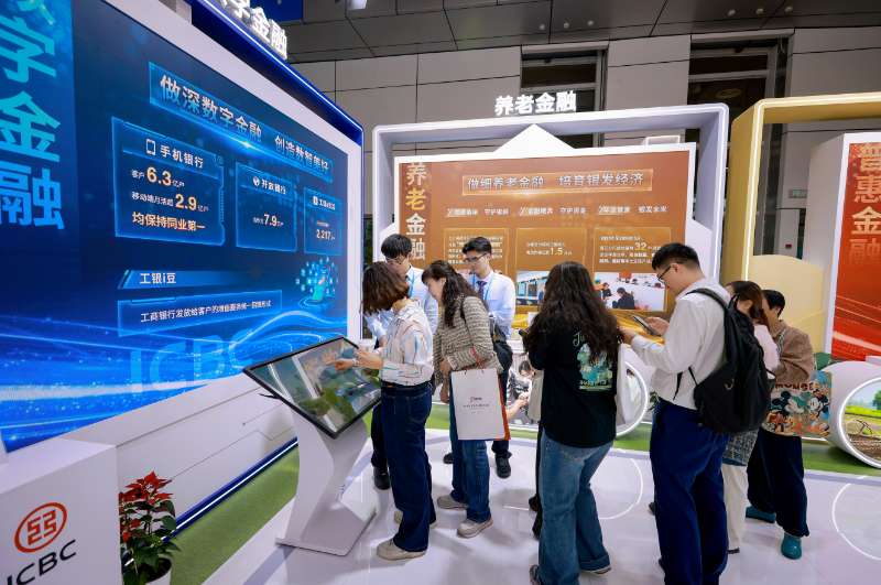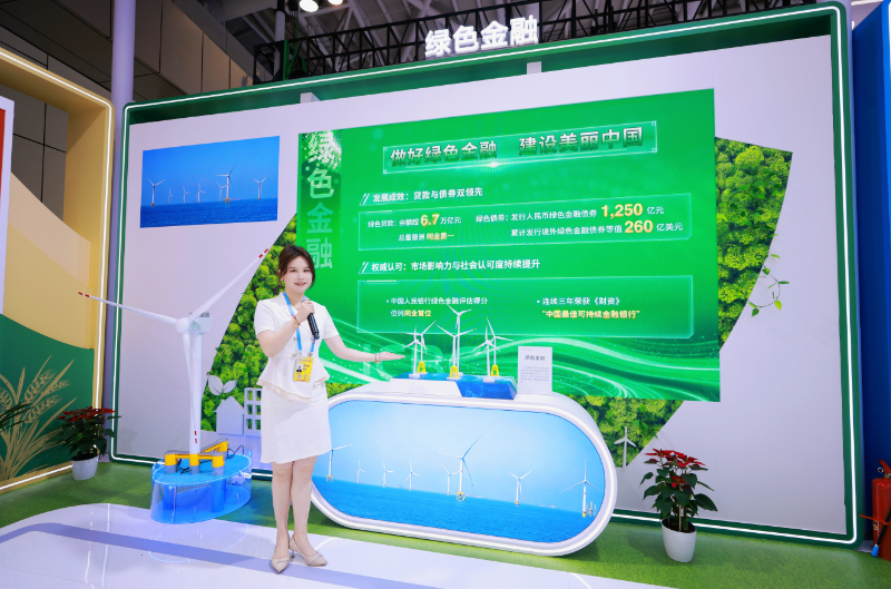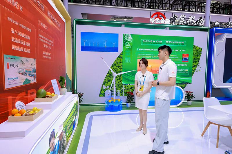 科技金融 筑牢科技强国之基 科技金融板块中,涌动着创新浪潮。在全球科技竞争与产业升级的时代背景下,工商银行正如展区屏幕滚动播放的内容一样,打造“五专”服务体系——专业机构、专项行动、专属产品、专门风控、专属保障,构建“总行—25家分行科技金融中心—160家科技支行”的立体化服务网络。 工商银行助力科创企业生长,打破传统信贷模式,采用科创审贷方式为科技企业提供融资。福建分行助力产业升级,为当地一家科技型企业提供核心供应链融资超2亿元。目前,该企业自主研发的高强度耐腐蚀铝合金已应用于航空航天与新能源汽车,成为新质生产力的代表。 绿色金融 描绘美丽中国画卷 在绿色金融板块,青山绿水带来的自然生命力跃然眼前。工商银行打造“工银绿色银行+”品牌,创新实施生态保护红线风险全流程管理机制,严防投融资业务的ESG风险。 工商银行福州分行充分发挥地方优势,联动工银金融租赁有限公司,成功落地福建分行首笔海上风电绿色直接租赁业务,为“莆田平海湾D、E区海上风电场”项目提供风机塔筒设备,让海上绿色能源源源不断点亮万家灯火。 “绿色金融是一道必答题”。工商银行业务升级转型成功的同时,也得到了业内的一致认可,获得中国人民银行绿色金融评估得分位列行业首位,连续三年荣获《财资》“中国最佳可持续金融银行”。截至目前,工商银行绿色贷款余额超6.7万亿元,总量稳居同业第一。发行人民币绿色金融债券1250亿元,累计发行境外绿色金融债券等值260亿美元,交出了一份令人信服的绿色金融答卷。